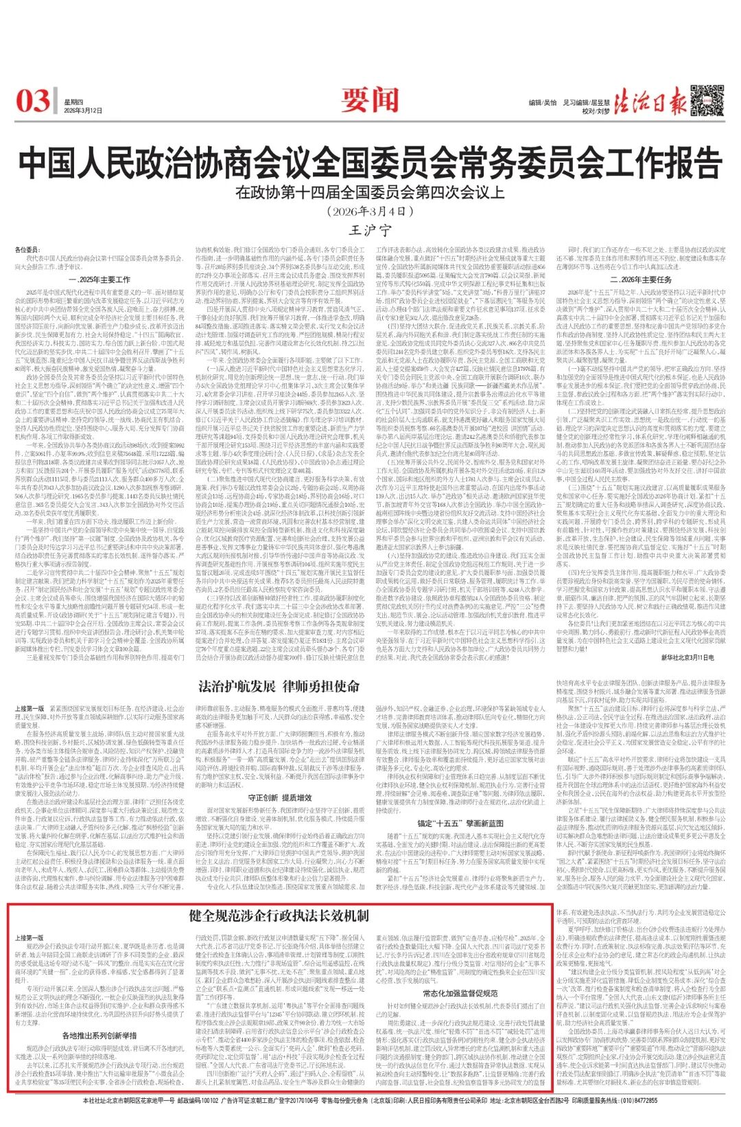 今年政府工作报告在部署2026年工作时提出,健全规范涉企行政执法长效机制,引发代表委员热议。